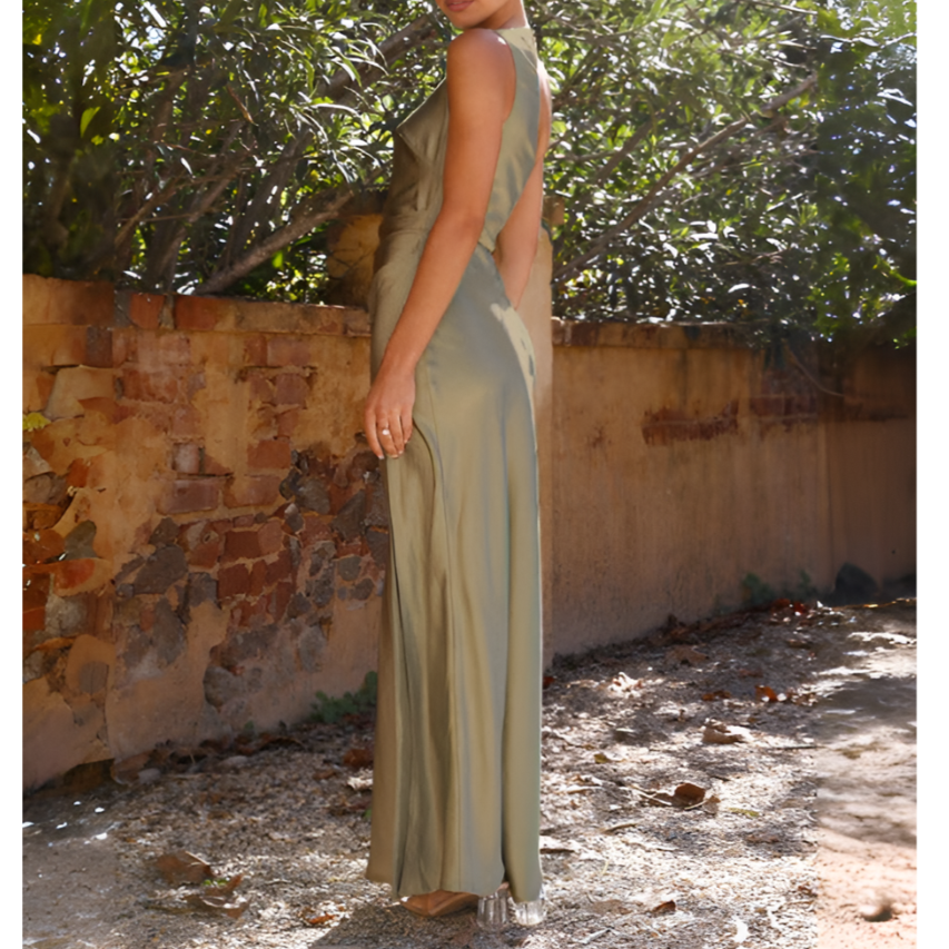 • One-Shoulder Design – Den asymmetriske udskæring skaber et dramatisk og sofistikeret look, der fremhæver skuldre og hals på en elegant måde.