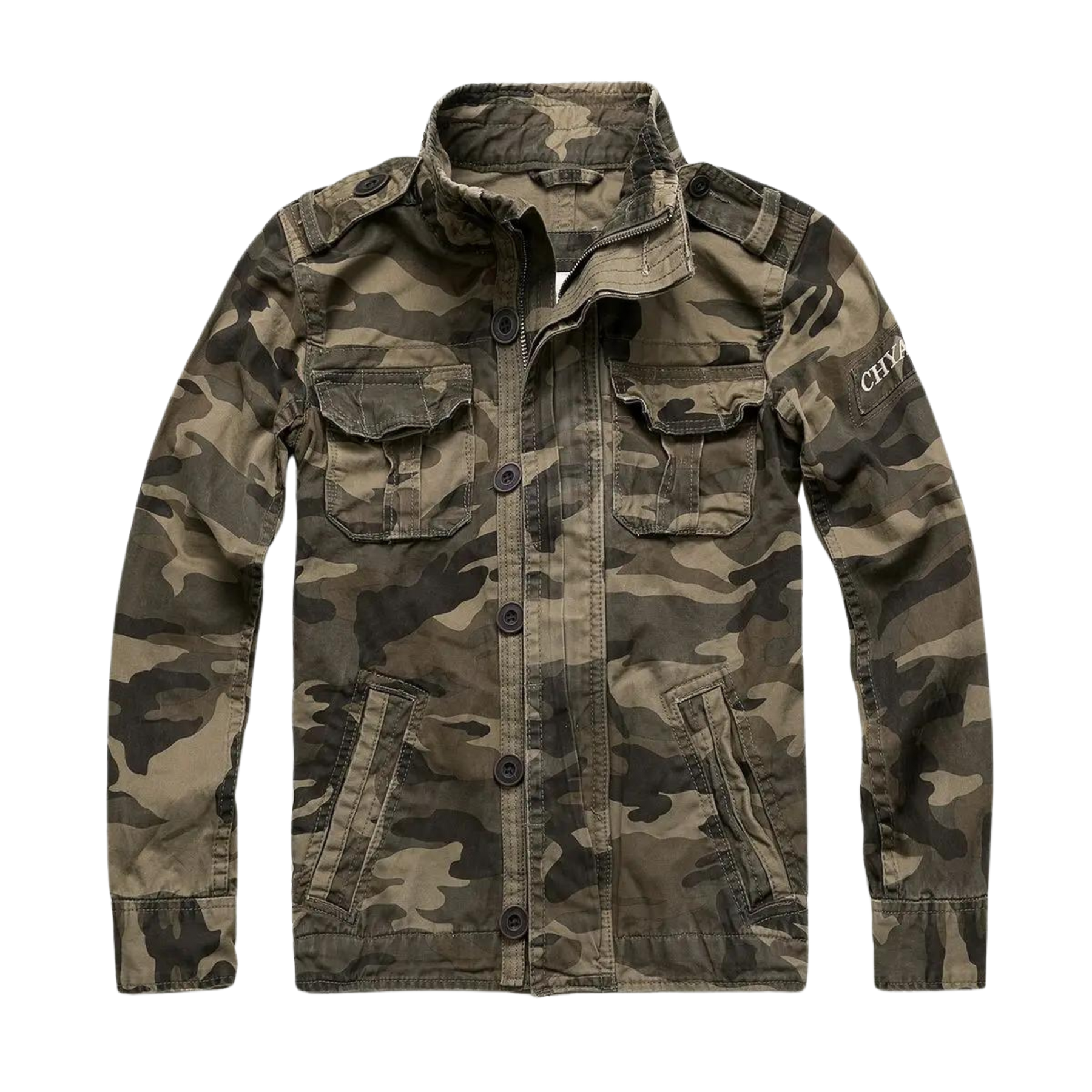 Karakter og Cool Vibe: Klassiske detaljer som brystlommer, knaplukning og vaskede toner giver jakken en rå charme.